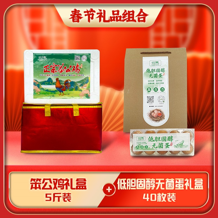 【2026春节年货礼品组合】低胆固醇无菌蛋礼盒(40枚)+笨公鸡礼盒(5斤)
