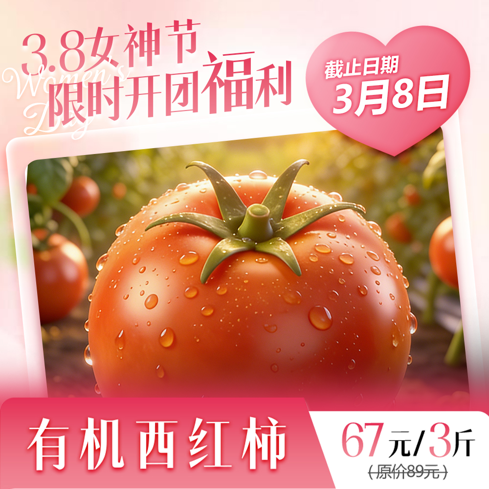 【3·8女神节团购,仅限30份】有机西红柿3斤,无农药、无化肥、无激素、安全新鲜采摘